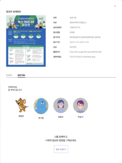 두번째 주요 기능은 공모전의 팀원 모집 기능으로,