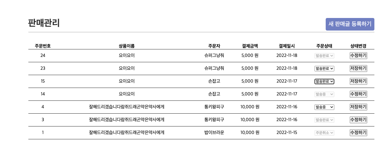 - 마이페이지 판매 관리