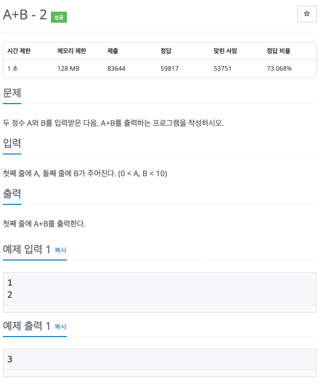 두 정수 A와 B를 입력받은 다음, A+B를 출력하는 프로그램을 작성하시오.