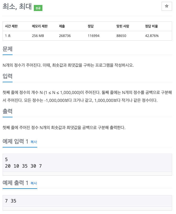 [Bronze III] 최소, 최대 - 10818