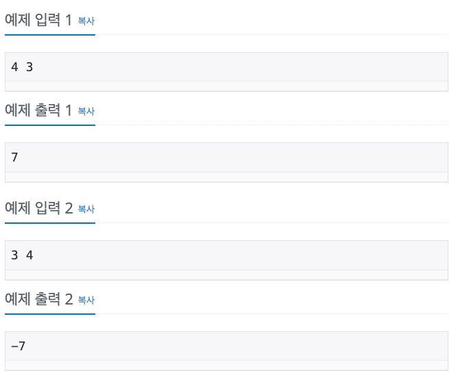 답 : 간단한 입출력 문제이다. 수의 범위가 커 long으로 처리했다.