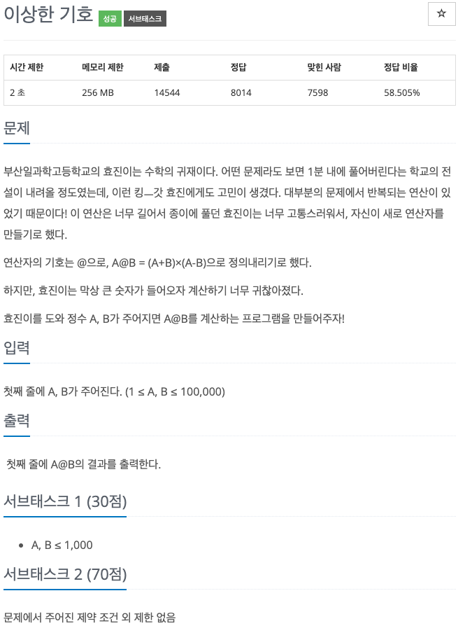 효진이를 도와 정수 A, B가 주어지면 A@B를 계산하는 프로그램을 만들어주자!