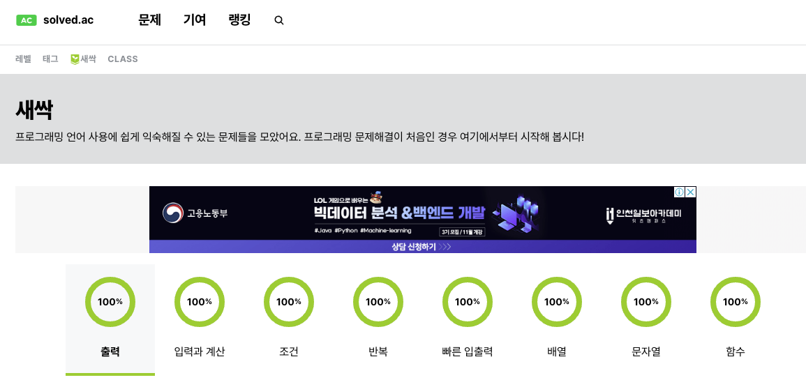 11일만에 새싹 문제를 다 풀었다.