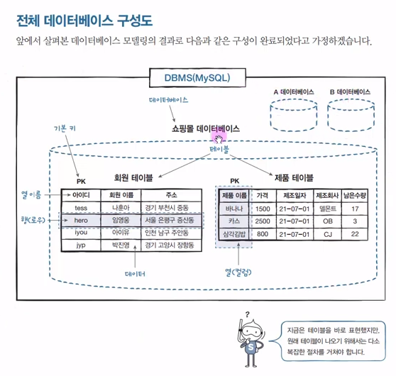 우리가 살고 있는 세상에서 사물이나 작업을 DBMS의 데이터베이스 개체로 옮기기 위한 과정이다.