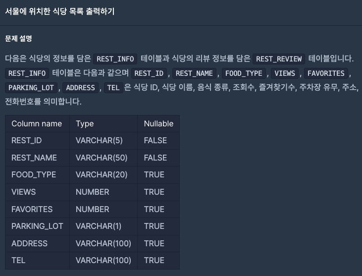 [level 4] 서울에 위치한 식당 목록 출력하기 - 131118