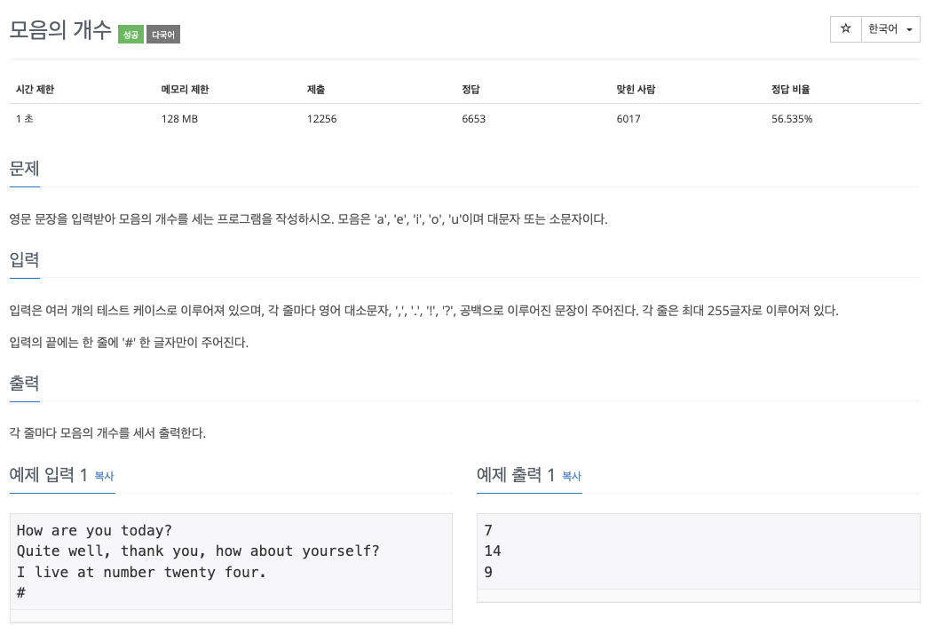 이외엔 포문을 통해 모음의 개수와 대조한 뒤 카운트를 하고