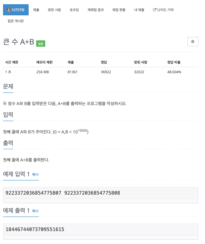 10757번: 큰 수 A+B