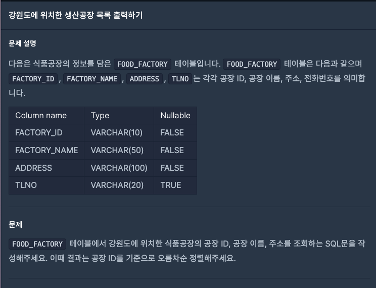 [level 1] 강원도에 위치한 생산공장 목록 출력하기 - 131112