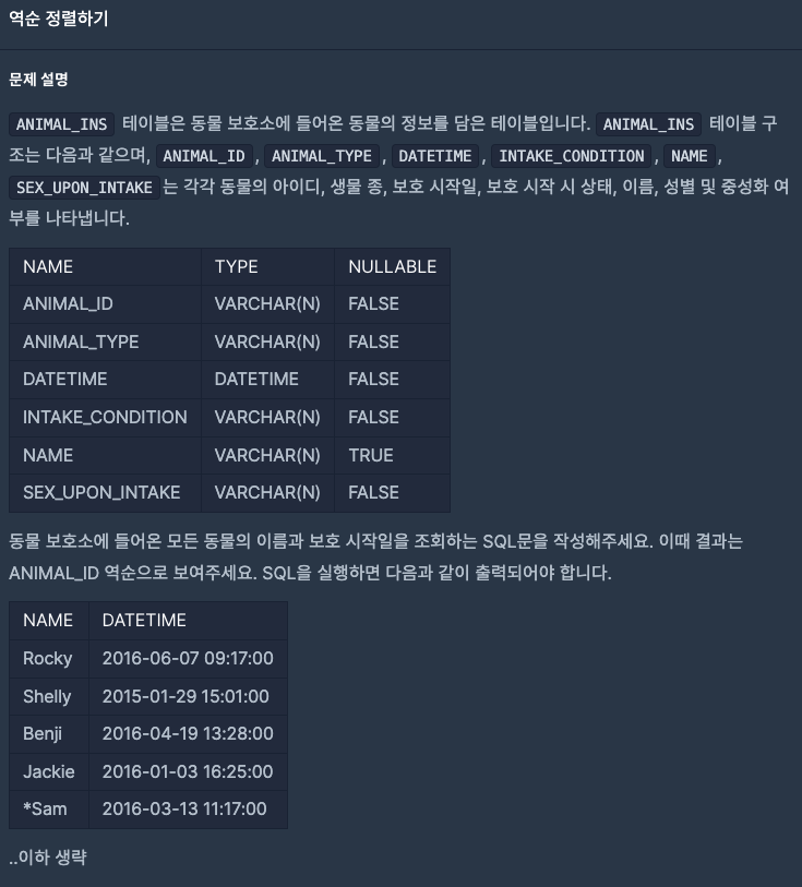 ORDER BY ANIMAL_ID DESC;'algorithm > 프로그래머스' 카테고리의 다른 글