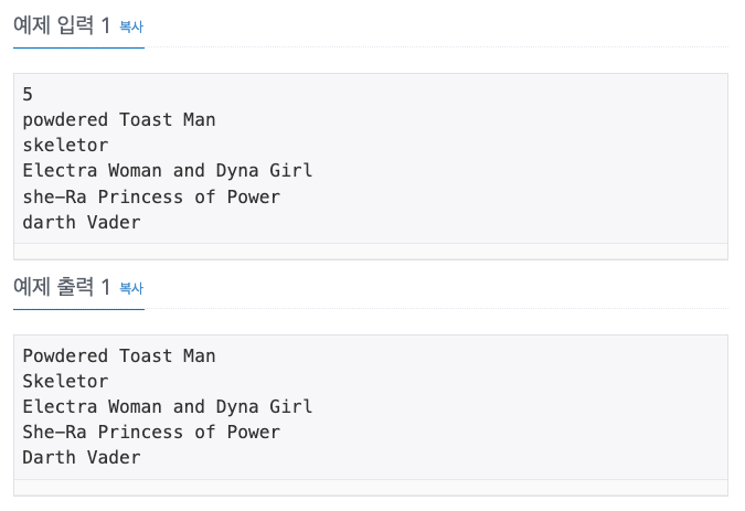 각 줄의 첫글자를 대문자로 바꾼뒤 출력한다.