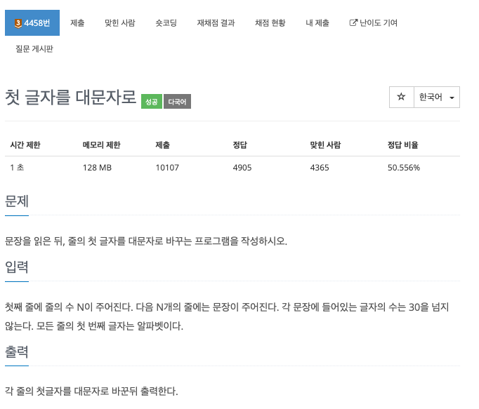 [Bronze III] 첫 글자를 대문자로 - 4458