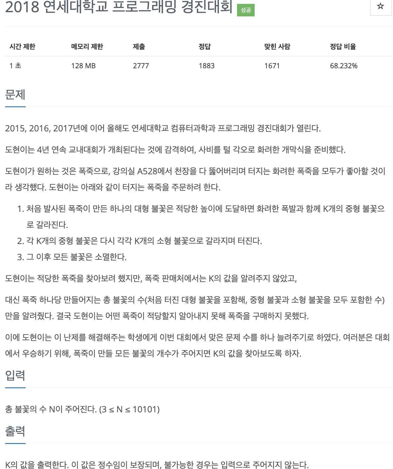 15667번: 2018 연세대학교 프로그래밍 경진대회