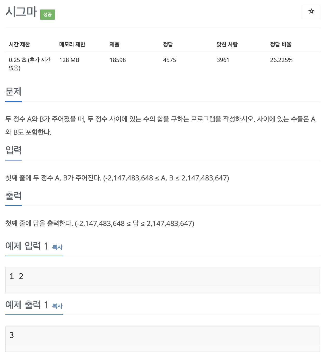 첫째 줄에 두 정수 A, B가 주어진다. (-2,147,483,648 ≤ A, B ≤ 2,147,483,647)
