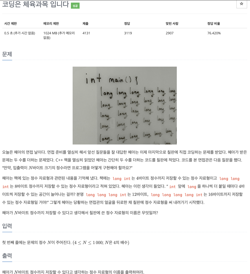 [Bronze V] 코딩은 체육과목 입니다 - 25314