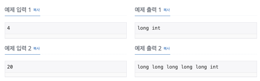 System.out.print("long ".repeat(answer) + "int");