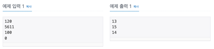 입력은 마지막에 0이 들어오기 전까지 계속해서 줄 단위로 주어진다.