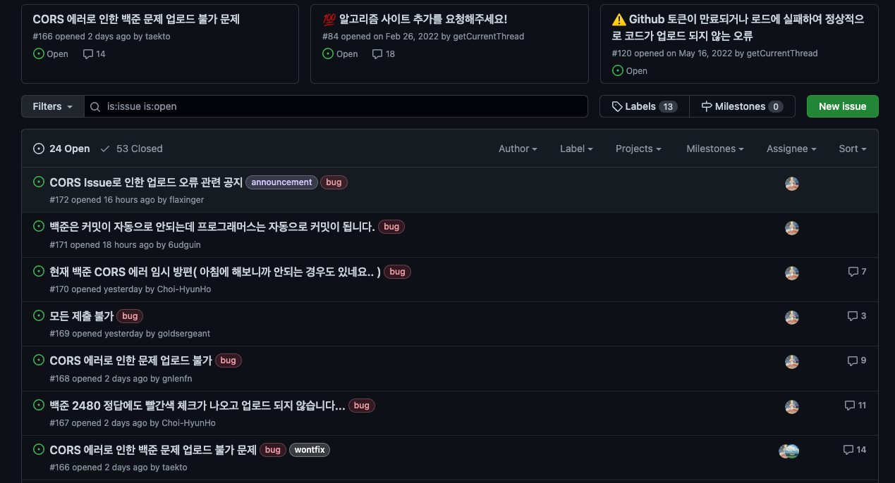 현재 다양한 에러가 보고 되는 상태이다.