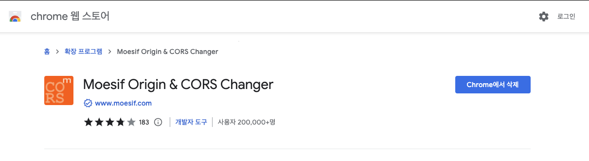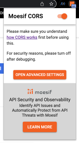 Moesif Origin & CORS Changer 설치 및 ON 이다.