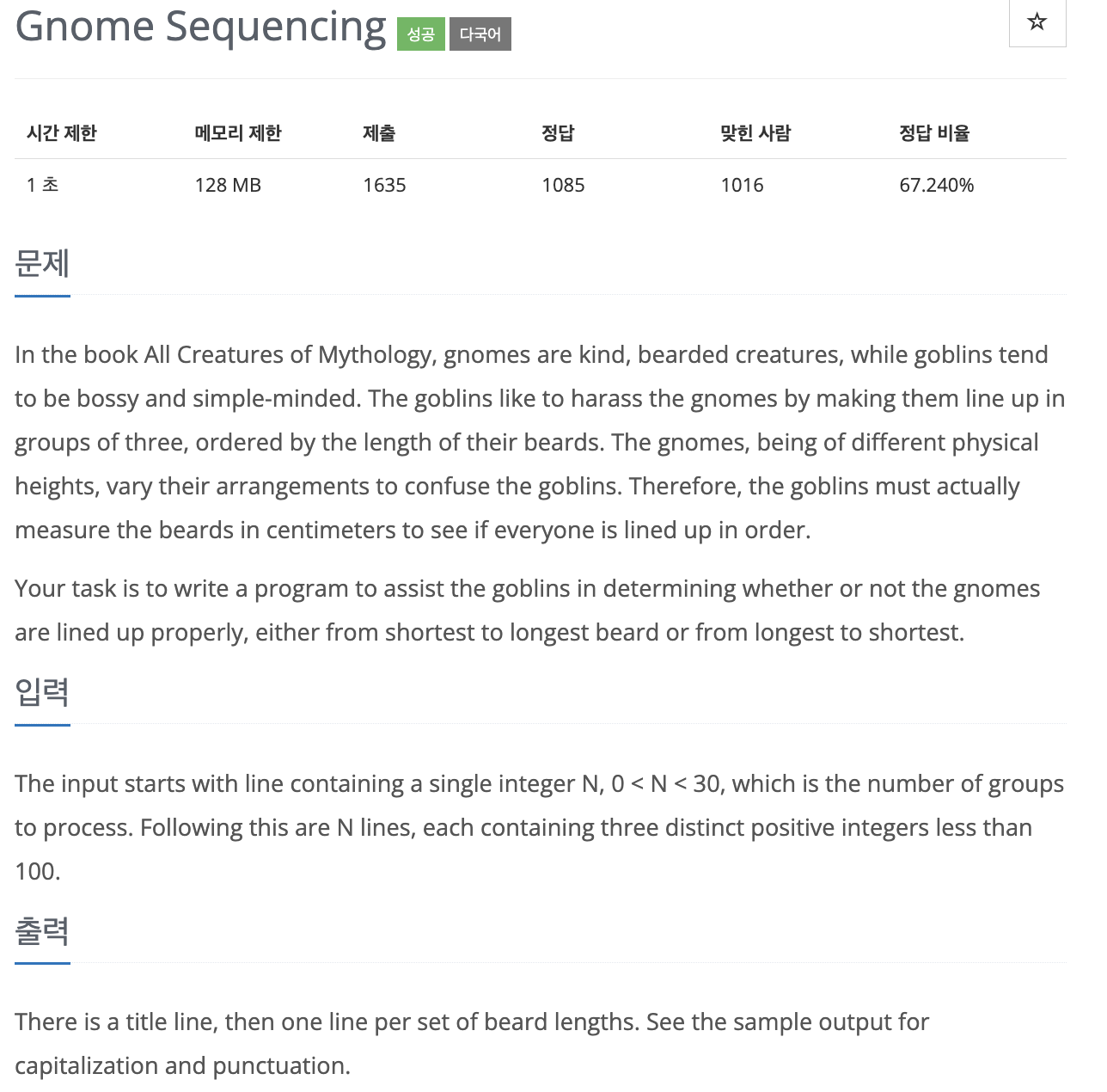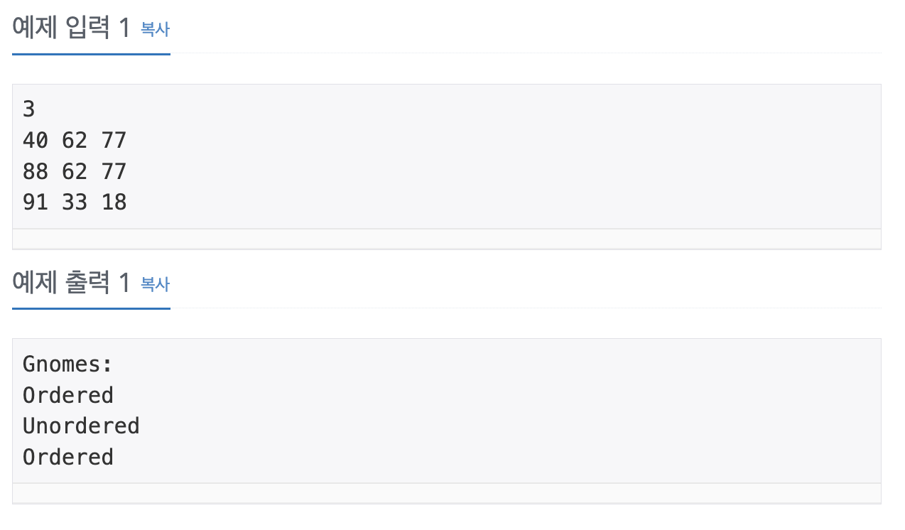 제대로 정렬되었는지를 결정하기 위해 고블린을 돕는 프로그램을 작성하는 것이다.