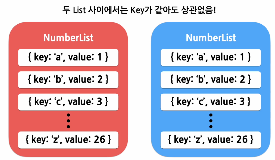 특정 범위에서 유효하다. key의 값은 같은 List에 있는