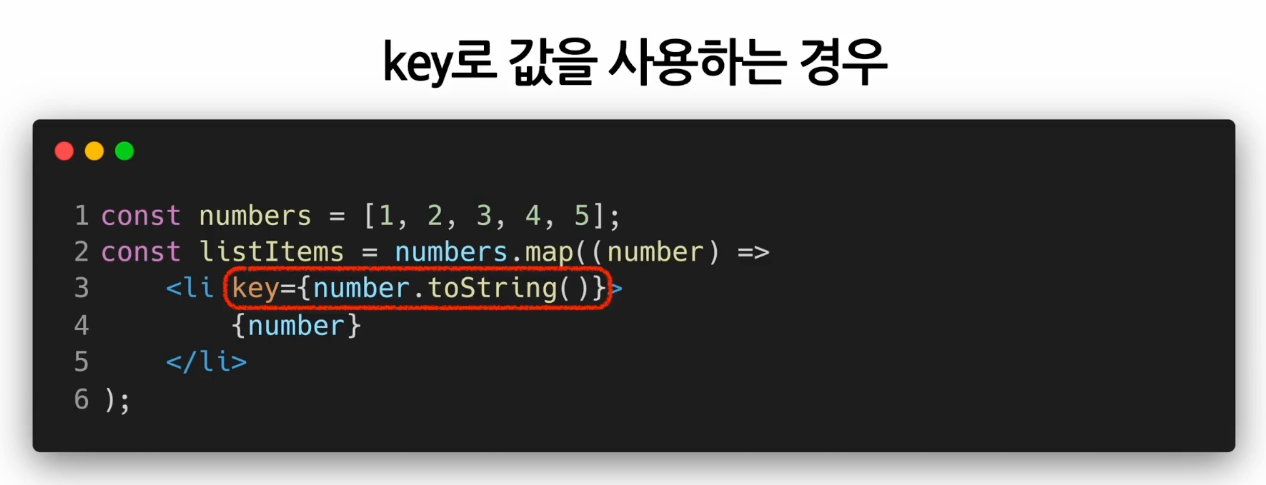 React에선 아이템을 구분하기 위한 고유한 문자열을 이야기한다.