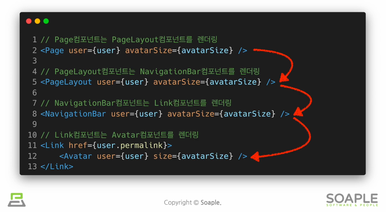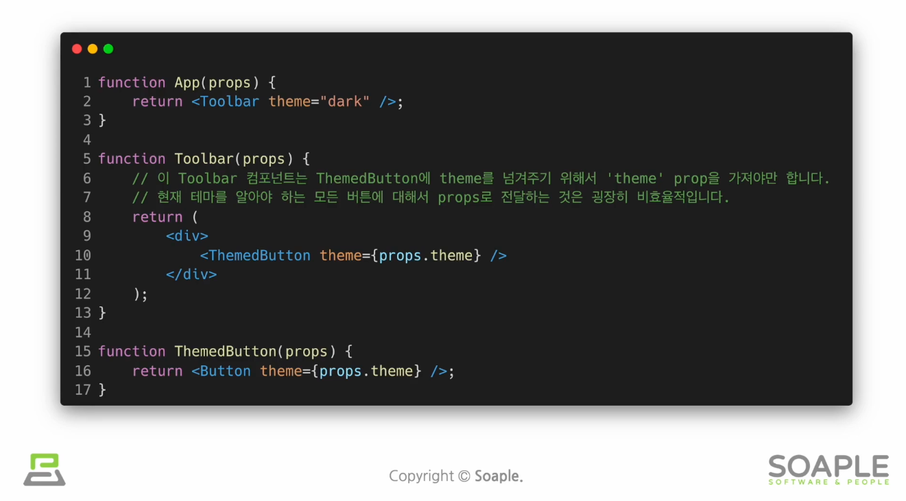 컴포넌트와 컨텍스트가 연동이 되면 재사용성이 떨어지기 때문에
