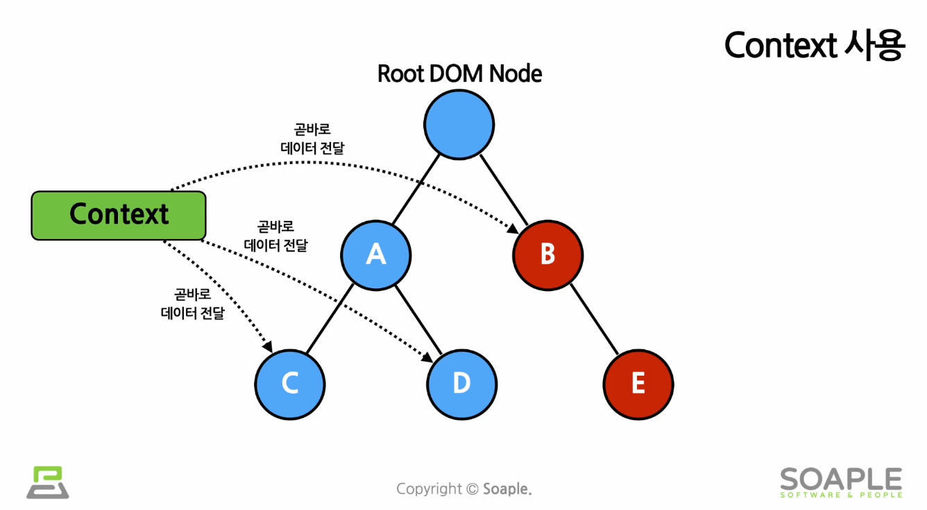 자주 사용하는 데이터의 경우 코드도 복잡하고 사용하는데 불편. 그래서 Context 가 등장함.