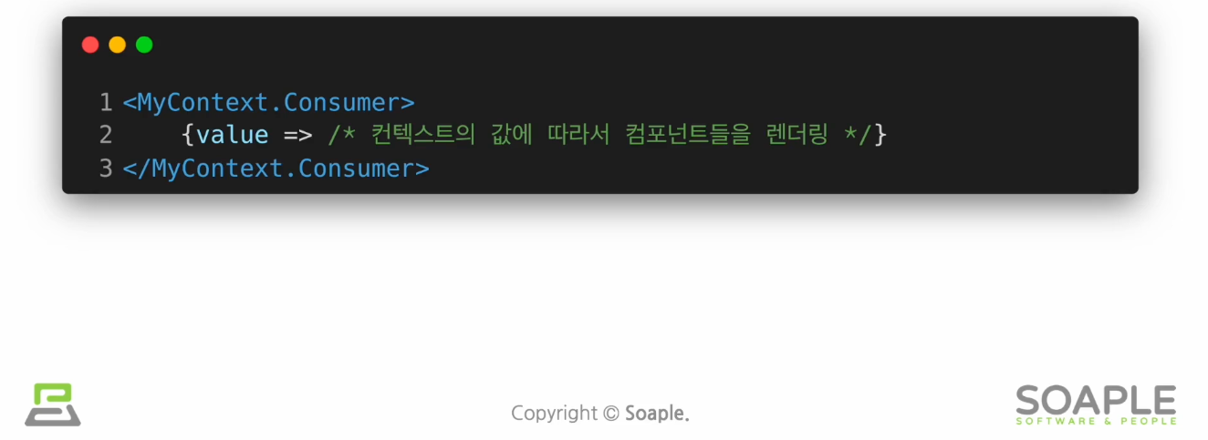 Context.Consumer : 컨텍스트의 데이터를 구독한다.