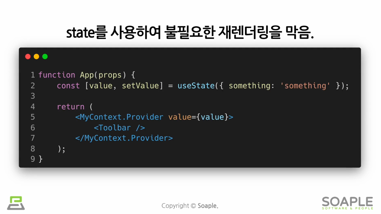 만약 useContext Hook을 사용하는 컴포넌트의 렌더링이 꽤 무거운 작업인 경우 별도의 최적화 필요하다.