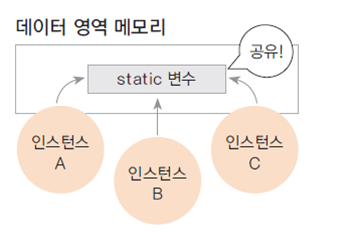 - 인스턴스가 생성될 때 만들어지는 변수가 아닌, 처음 프로그램이 메모리에 로딩될 때 메모리를 할당