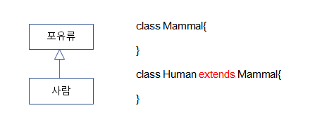 - 하위 클래스가 상위 클래스의 속성과 기능을 확장 (extends)한다는 의미