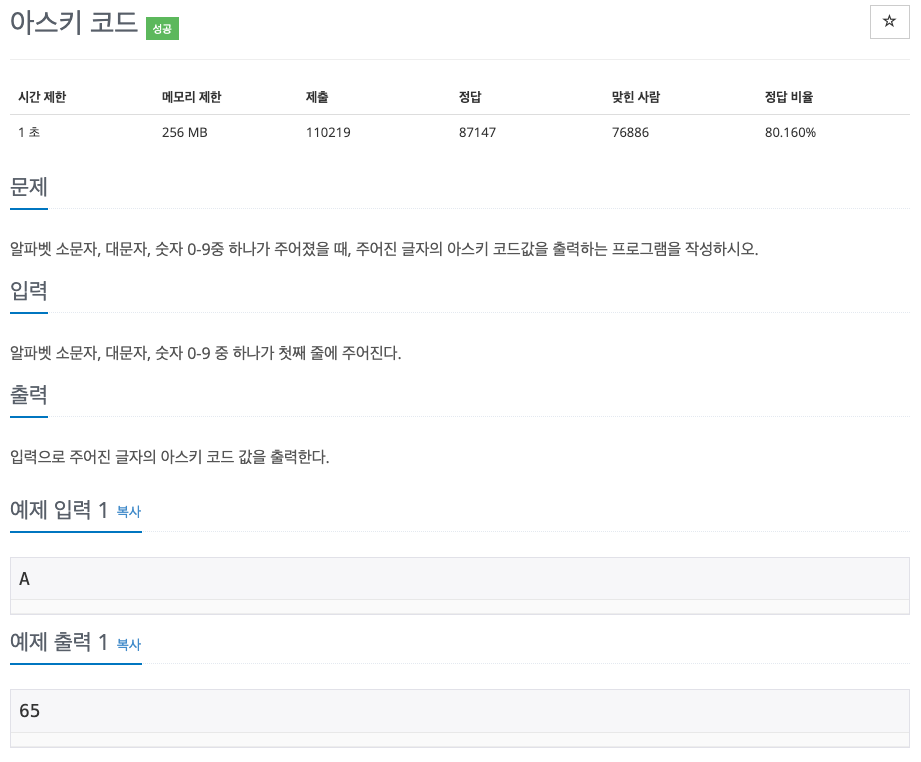 [Bronze V] 아스키 코드 - 11654