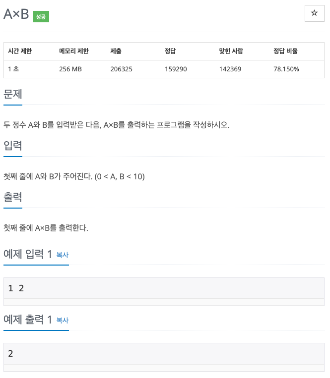 두 정수 A와 B를 입력받은 다음, A×B를 출력하는 프로그램을 작성하시오.