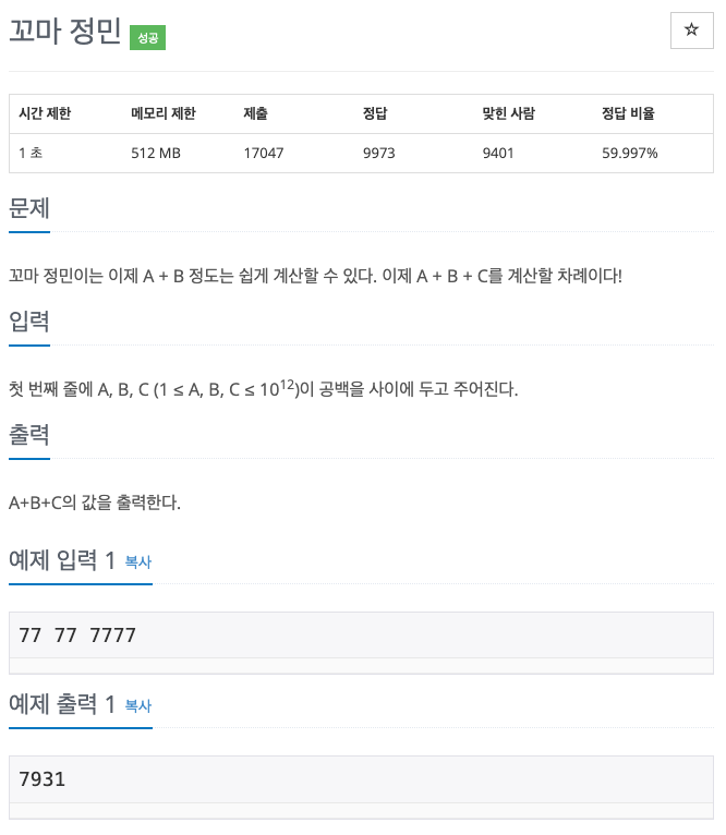꼬마 정민이는 이제 A + B 정도는 쉽게 계산할 수 있다. 이제 A + B + C를 계산할 차례이다!